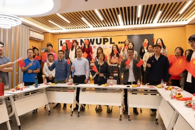 精心准备了表达祝福与爱国寓意的蛋糕,同时,全体师生也通过丰富多彩的歌舞、朗诵等文艺表演活动共同体验了中华民族的丰富文化,感受国庆的欢腾。七十五载春秋更迭,泱泱华夏民族同心,新时代、新征程,各族人民更要同心同德,肩负崇高使命,续写新时代荣光。