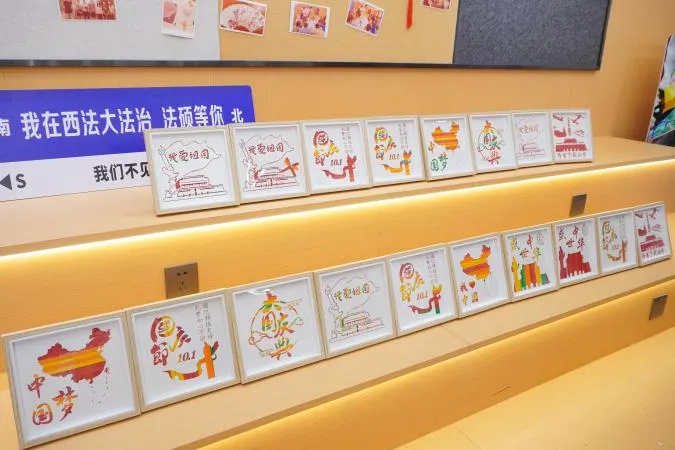 策划了“锦绣中国,盛世华诞”爱国主题相框DIY手工制作活动。同学们齐聚“青矜驿站”,发挥创意,共同制作具有特殊意义的爱国主题DIY相框。笔墨记刻时代,椽笔书写华章。同学们的笔画记录着对祖国的美好祝愿,表达着自己的爱国情怀。