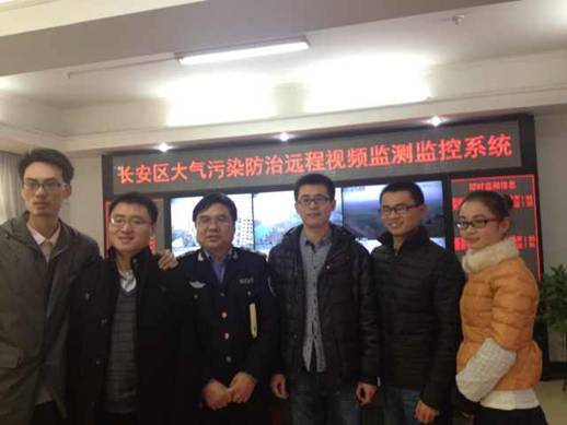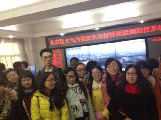 其次,侯兵队长向我们介绍了环保视频监控平台和移动通信平台。两个平台均采用当前国内先进的视频监控技术,通过手机终端与3G通信技术,实现对重点污染源的废水、废气、废渣等污染状况的实时监控,可将重点污染源管理、排污数据在线监测、排污超标报警、污染治理设施运行状态系统有机地结合在一起。其中覆盖全区的视频监控系统通过可360度旋转的高清摄像头对长安区的环境状况进行24小时实时监控,使辖区的环境保护得到了有力保障。杨副局长和侯大队长还特地带我们参观了三楼的视频监控室。该监控视频实时显示了长安区十七个街道的噪声值和pm值。监控室的工作人员还热情地向我们讲解了视频监控室的运行机制,学员们积极提问,受益匪浅。
