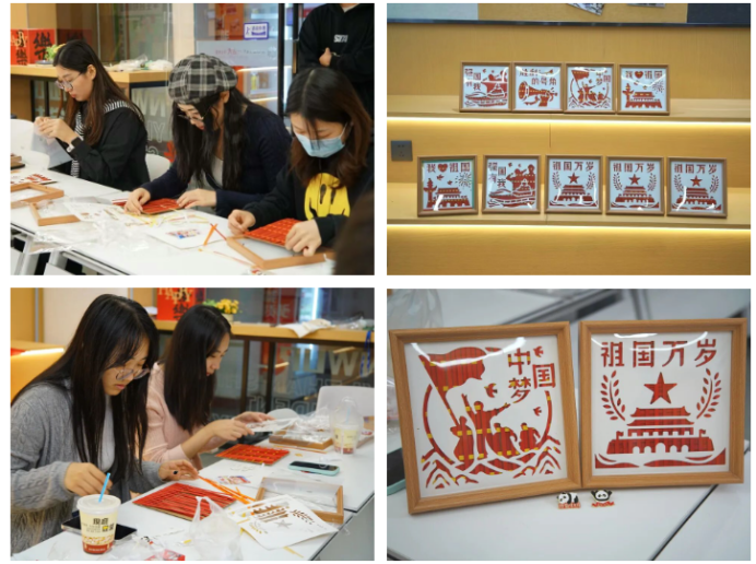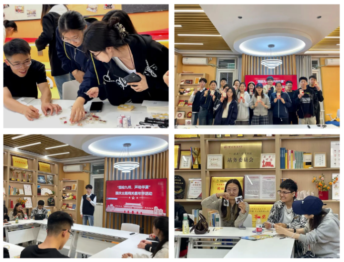 10月3日,同学们齐聚“青衿驿站”,发挥创意,共同制作具有特殊意义的爱国主题DIY相框。刀剪镌刻山河,寸框盛放华夏。同学们用一笔一画写下对祖国的美好祝愿,也写下心中的自豪与敬意。