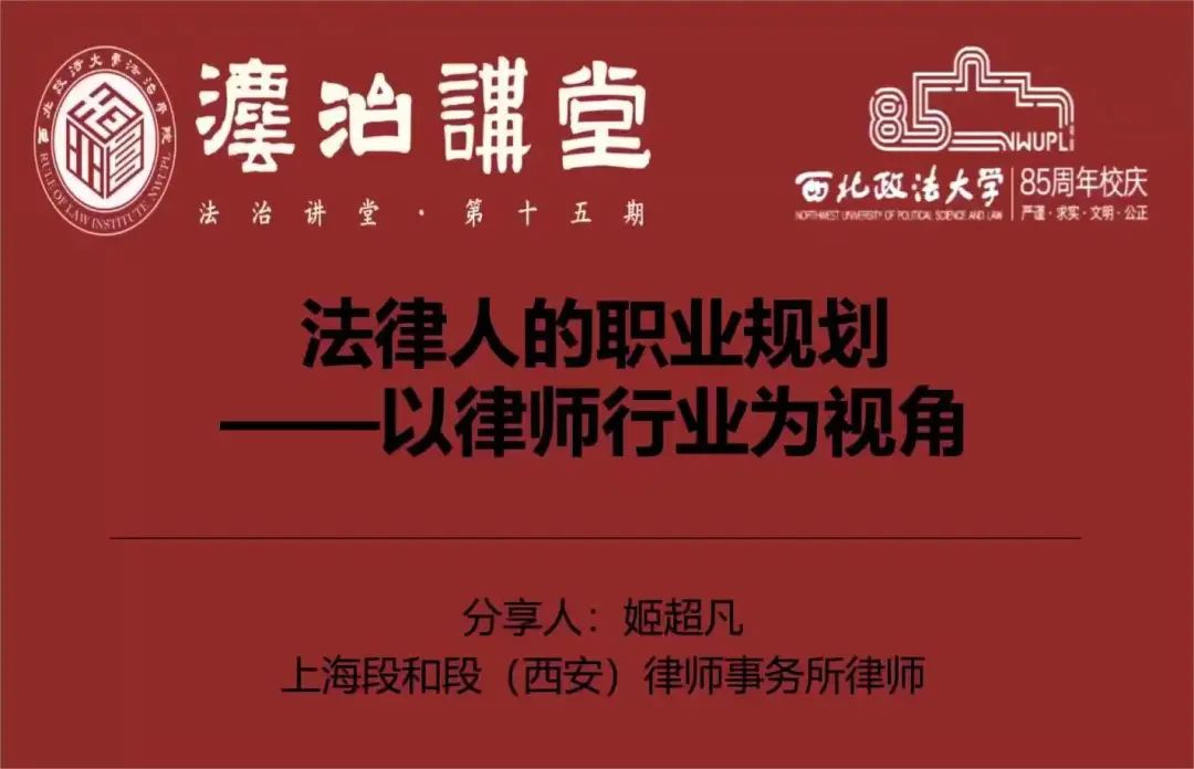 法治讲堂系列讲座第十五期在线上举行。上海段和段(西安)律师事务所合伙人、党支部副书记、青工委主任姬超凡律师做题为《法律人的职业规划——以律师行业为视角》讲座。讲座由澳门威尼斯人娱乐场