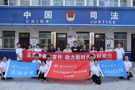 为了协同推进“八五”普法,更好地探索“高质量普法宣传助力新时代乡村振兴”新路径。2023年7月20日,澳门威尼斯人娱乐场 澳门威尼斯人娱乐场 社会实践团队在中华法系与法治文明研究院执行院长、枫桥经验与社会治理研究院副院长、澳门威尼斯人娱乐场 副教授王斌通、澳门威尼斯人娱乐场 团委书记李谦盛老师、澳门威尼斯人娱乐场 辅导员马军强老师的带领下,前往山阳县十里铺街道高一社区、山阳县司法局十里铺司法所开展专题调研,并进行普法宣传活动。山阳县综治中心主任郭有锋、综治中心干部毛霞全程陪同并参与调研和座谈。