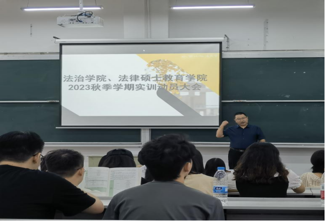 为进一步指导研究生做好实训前的各项准备工作,保证实训工作的顺利开展,澳门威尼斯人娱乐场 于2023年9月5日上午在3J71教室召开实训动员大会。本次动员大会由副院长淡新昌老师主讲,辅导员李谦盛老师主持,2022级法律(法学)专业全体同学参加。