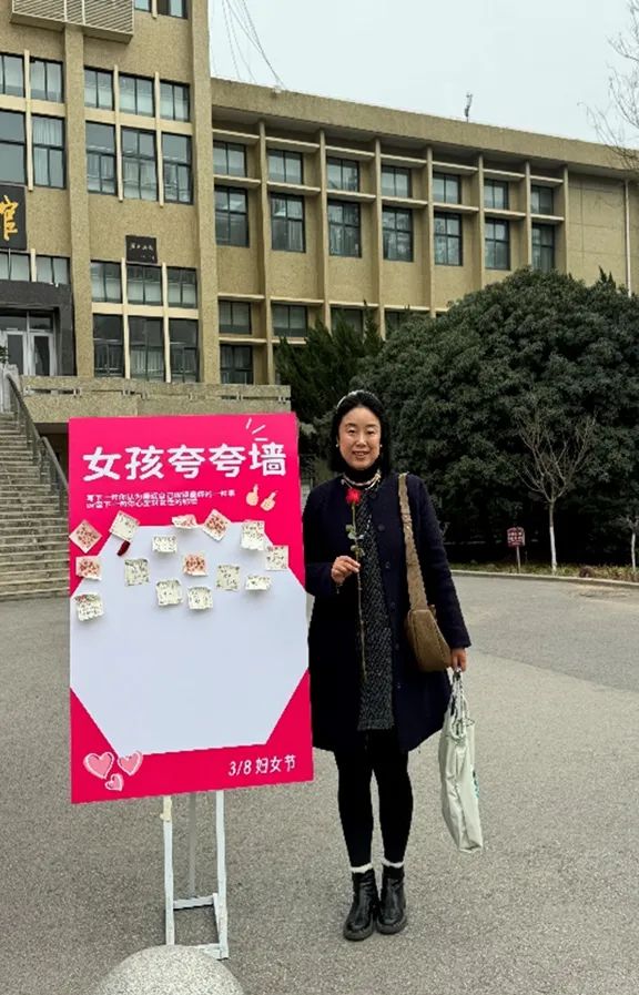 活动现场,“女孩夸夸墙”成为了焦点。同学们纷纷驻足,执笔写下对女性的敬意与祝福。一句句真挚话语如春日暖阳,既传递尊重与欣赏,更凝聚成激励成长的“她力量”。展板上盛放的留言之花,映照着校园平等包容的文化底色。