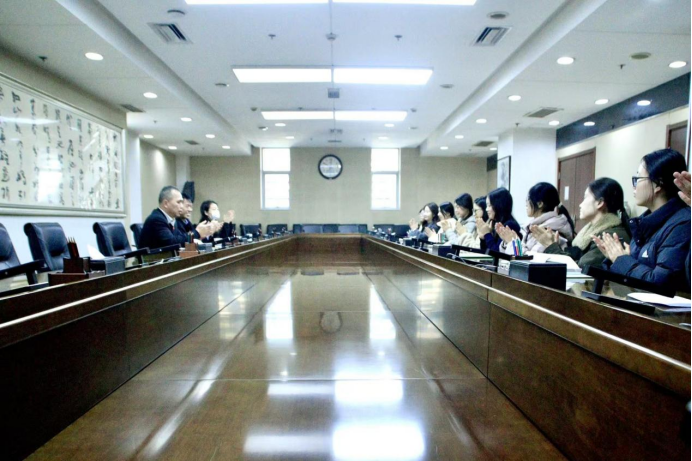12月2日下午,张学龙一行赴陕西省人民代表大会常务委员会。实训研究生结合立法调研、文件起草、行政会务等岗位实践,分享了成长收获。同学们表示,通过深度参与人大实务,不仅提升了法律文本分析、程序规范把握等专业技能,更对我国根本政治制度的运行逻辑与法治实践内涵形成了直观深刻的认知。省人大人事处副处长郑东明高度肯定了实训学生的综合表现,称赞其展现出扎实的专业功底、严谨的工作作风与积极的进取态度,彰显了新时代法治青年的责任与担当。张学龙对省人大常委会的鼎力支持表示感谢,强调立法机关是法治实践的核心阵地,勉励同学们珍惜平台、笃学善思,在实践中厚植家国情怀,并表示希望继续深化与省人大的合作,构建“协同培养、过程共管”的校地育人新模式。