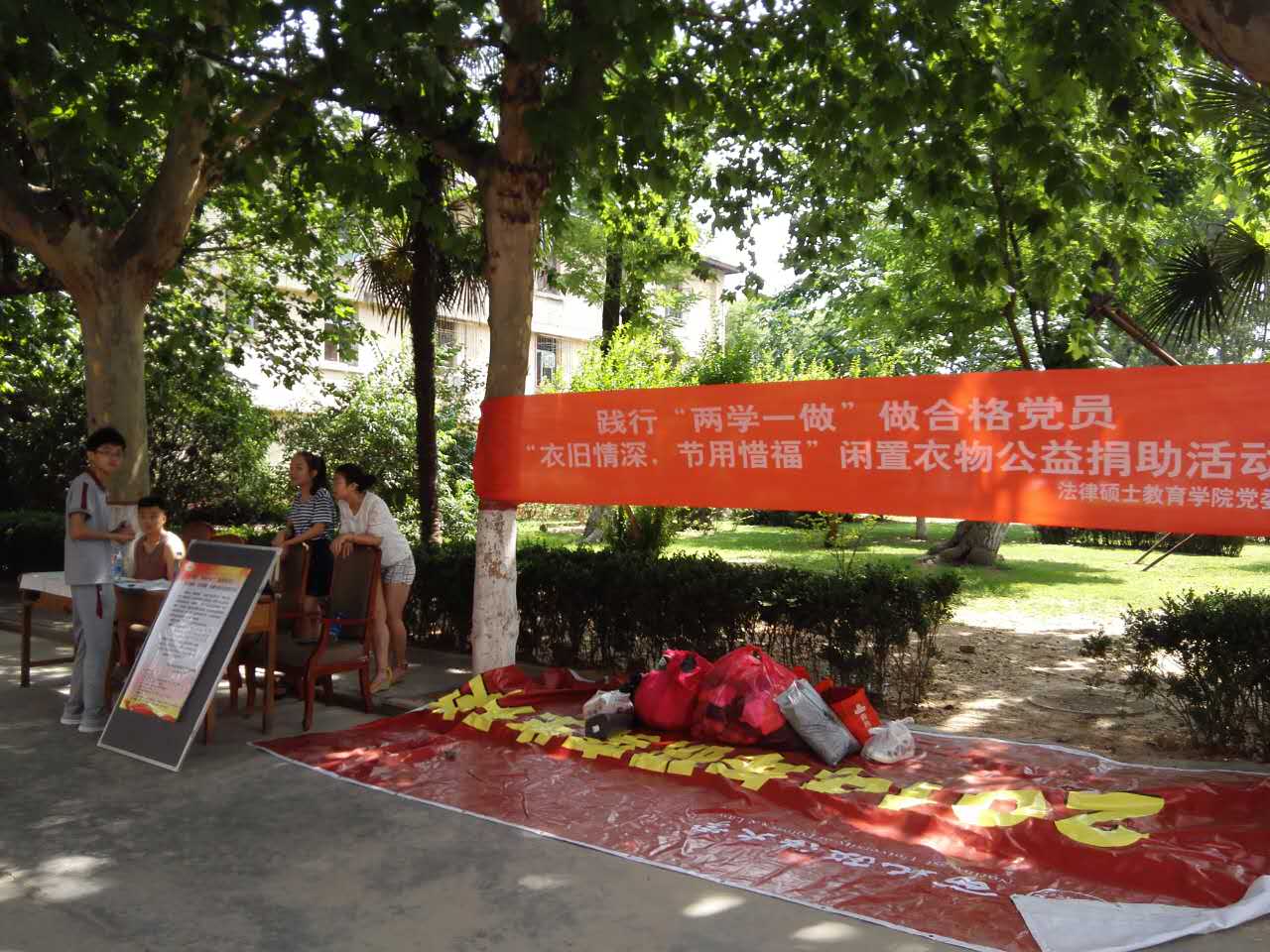 党委结合“两学一做”学习教育,号召全体党员争做先锋模范,勇于担当,奉献爱心,服务群众。特举办“衣旧情深,节用惜福”闲置衣物公益捐助活动。 欢迎各位老师同学将闲置不用的衣物,课外书籍、玩具等捐赠出来,由公益组织统一送到贫困地区困难群众和贫困儿童手里。