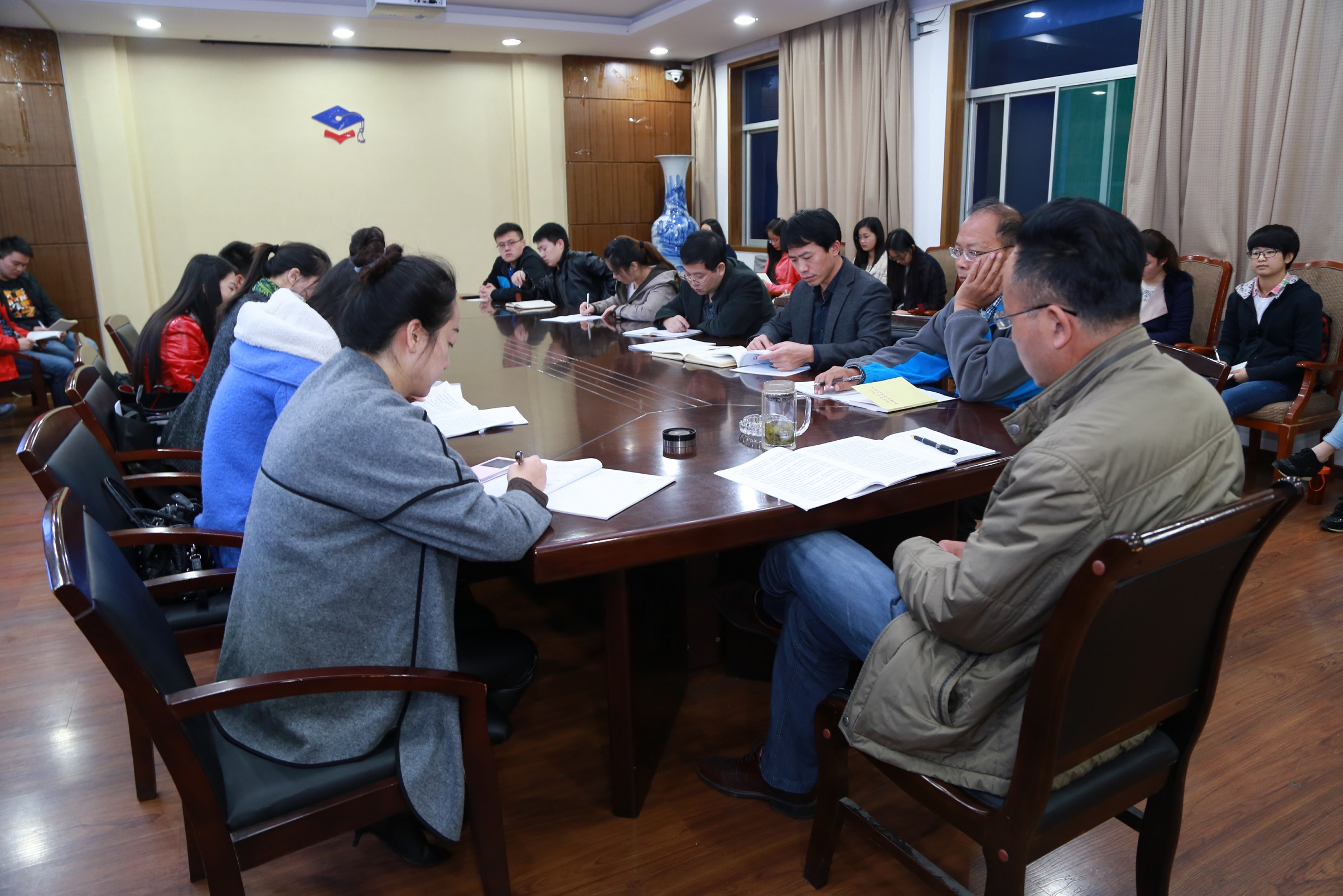 会议中宣读了《中共中央关于全面推进依法治国若干重大问题的决定》和《关于中共中央关于全面推进依法治国若干重大问题的决定的说明》,每一位与会人员都认真聆听,许多同志还仔细记录了《决定》中的要点内容,并进行思考和注释。