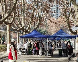 志愿者们在零下温度中一站就是几小时,感谢图书馆张晓芹老师以及所有为志愿者送温暖的人们。
