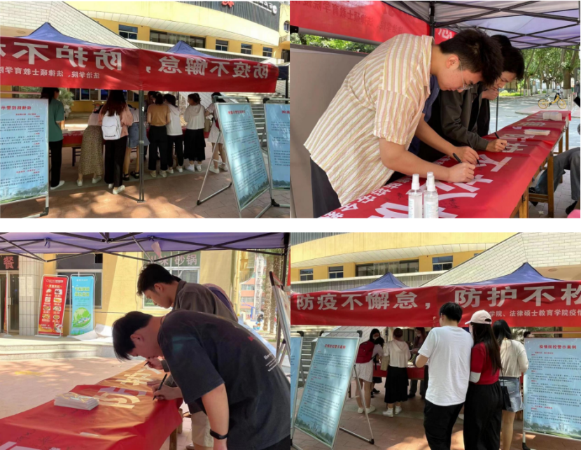 在活动现场,同学们参与热情十分高涨,经过活动现场的同学都不由得停下脚步,认真了解高校疫情防控的警示案例,对高校疫情防控的重要性与必要性有了新的认识,纷纷在“思想不麻痹,防疫不懈怠,防控不松懈”的条幅上签上了自己的名字。