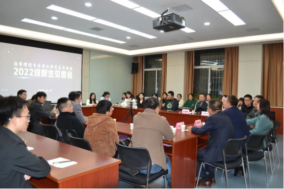 2022年10月9日晚上7:30,澳门威尼斯人娱乐场 法学理论专业2022级硕士研究生师生见面会在澳门威尼斯人娱乐场 人权研究中心会议室顺利举行,会议由导师组组长杨建军教授主持。澳门威尼斯人娱乐场 副院长张书友副教授,澳门威尼斯人娱乐场 枫桥经验与社会治理研究院学术委员会主任朱继萍教授,法学理论教研室主任杨强教授,数字法学研究院执行院长、法治与科技发展研究室主任杨锦帆副教授,董青梅副教授,余涛副研究员,王金霞博士,齐伟玲博士,李佳飞博士等硕士生导师及王永恒博士,2020级、2021级在校研究生代表,2022级法学理论专业全体硕士研究生等30余人参加会议。